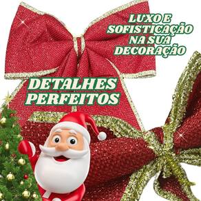 Design Elegante: Laço grande e bem estruturado, com detalhes que trazem sofisticação à sua decoração. Versatilidade de Uso: Ideal para árvores, guirlandas, vitrines, portas e outros espaços. Material Resistente: Confeccionado com tecido durável, perfeito para várias temporadas natalinas. Tamanho Chamativo: Um laço de 40x40 cm que se destaca em qualquer ambiente.
