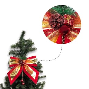 Contém: 01 laço grande texturizado de enfeite vermelho e dourado