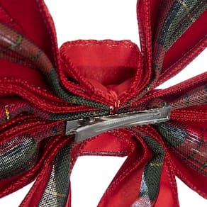 O Laço Xadrez tem 23 cm e é produzido em 100% poliéster com padronagem xadrez vermelha e verde. Pronto para enfeitar presentes ou usar para decorar a mesa posta, conta com uma presilha na parte de trás do laço que facilita a sua amarração.