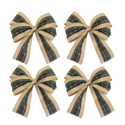 Laço Xadrez Verde Luxo Decoração Árvore Guirlanda Natal 18un Kit Laço Verde Xadrez para Árvore de Natal, Guirlanda.