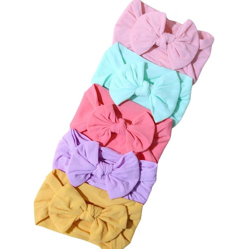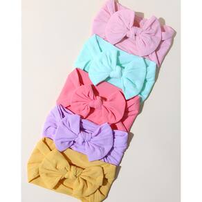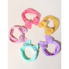 Laços De Cabelo Turbantes Bebês Slim Infantil kit 5 Unidades - Único - Rosa Claro