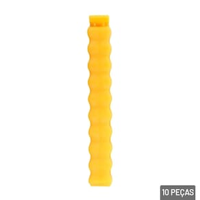 Lacre Para Embalagem 10cm 10 Peças com Supor Transforme a organização da sua cozinha com o Lacre para Embalagem, em um divertido design de batata frita! Perfeito para manter alimentos frescos, evitar derramamentos e deixar a despensa muito mais charmosa, esse acessório une praticidade e criatividade no dia a dia.\nIdeal para fechar sacos de biscoitos, massas, grãos, snacks ou alimentos congelados, os lacres são reutilizáveis, fáceis de usar e vêm acompanhados de um suporte organizador que mantém tudo no lugar.\nEspecificações:\nMarca : TOP MIX\nTipo de material : Plástico\nCores ou Estampa : Colorido\nDimensões do Produto : 10 X 1 X 1 CM\nDimensões da Embalagem : 11 X 8,5 X 3,5 CM\nPeso Bruto (Gramas) : 0.069