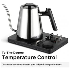 Aqueça sua água rapidamente com o potente elemento de 1500 watts, possibilitando um controle de temperatura exato 'ao grau' para extrair o máximo sabor de suas bebidas. A saída em bico fino (gooseneck) proporciona um fluxo de água suave e preciso, ideal para métodos de preparo por pour over, enquanto a alça ergonômica oferece conforto e segurança ao manusear.