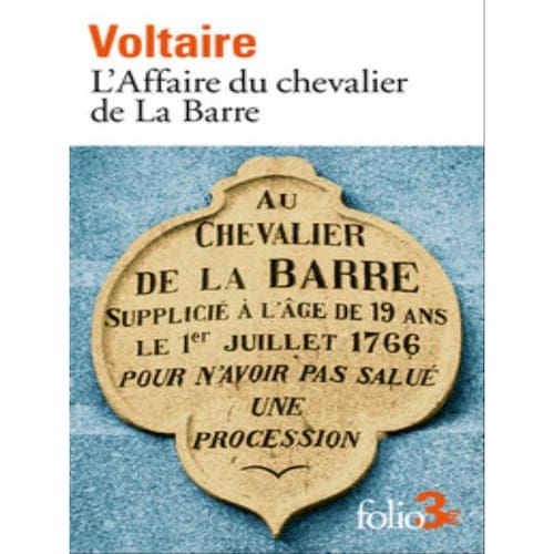 Abbeville, 1765. Le chevalier de La Barre est accusé d'avoir profané une statue du Christ. Victime d'un règlement de comptes, condamné sans preuves et au mépris de la loi, le jeune homme est torturé, décapité et brûlé avec, entre les mains, un livre interdit, le Dictionnaire philosophique d'un certain Voltaire… Directement mis en cause dans cette affaire, Voltaire s'insurge et utilise sa meilleure arme pour dénoncer l'injustice : sa plume. Ean: 9782073014221