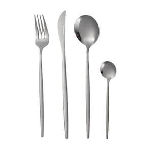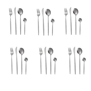 Laguiole Conjunto de Talheres de Dourado 24 peças - Eclat de Inox Composto por: 6 facas 21,34 cm / incluindo lâmina de 10 cm 6 garfos 20,25 cm 6 colheres 20cm 6 colheres de sobremesa 13,68 cm Material: aço inoxidável acabamento PVD Cor: prata Não pode ser lavado na máquina de lavar louça, pois os talheres de PVD exigem uma manutenção mais delicada. Marca: Não Informado Ean: 3700186268139