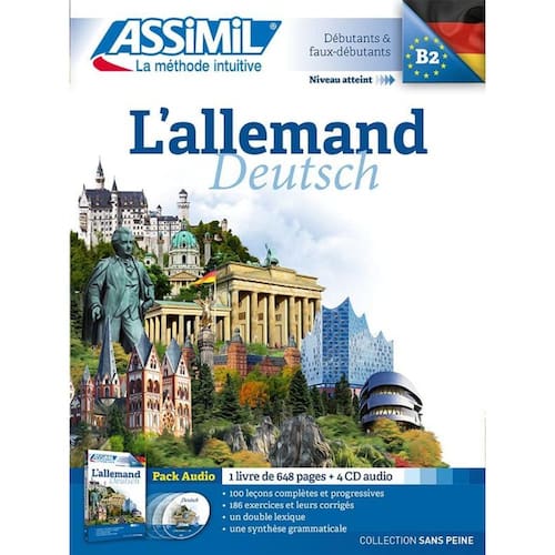 Un livre de 110 leçons en 592 pages et 4 CD audio. Voici la toute nouvelle édition de notre méthode d’allemand, un des cours les plus vendus dans notre catalogue. Les évolutions structurelles de la langue, l’apparition de nouveaux termes et tournures idiomatiques ont rendu nécessaires la réalisation de cette nouvelle méthode d’allemand, qui prend aussi en charge la réalité linguistique d’autres pays germanophones comme l’Autriche. Plus structuré que le français, l’allemand est de ce fait une langue logique et facile à apprendre. Cette méthode permet aux débutants, en six à huit mois, de converser dans la langue d’Angela Merkel tout en découvrant les us et coutumes d’un pays voisin de la France : de la phase « d'imprégnation » à la phase « d'activation », en 20 à 30 minutes d’étude quotidienne, vous acquerrez le vocabulaire, la grammaire, la syntaxe, c’est-à-dire l’essentiel des connaissances à maîtriser pour communiquer Les enregistrements, présentés dans cette version sur CD audio, reprennent l'intégralité des textes en allemand des leçons et des exercices de traduction du livre. Ils sont interprétés, à un rythme progressif, par des locuteurs natifs professionnels. Marca: ASSIMIL FRANCE **