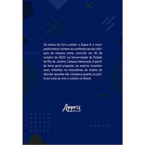 Os textos do livro Lamber a língua II: a vocoperformance reúnem as conferências do colóquio de mesmo nome, ocorrido em 30 de outubro de 2023, na Universidade do Estado do Rio de Janeiro, Campus Maracanã. A partir do tema geral proposto, os autores investem suas reflexões na miscelânea de modos de abordar questão tão complexa quanto as práticas orais de arte e cultura no Brasil.