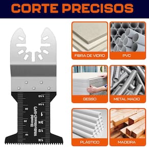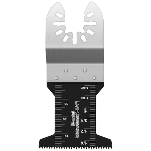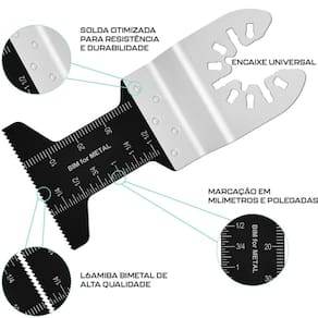Lâmina de Serra Bimetal Oscilante Multiferramenta Multicorte Encaixe Universal Dremax - Marca: Dremax - Referência: AMF007 - Dimensões: 90 x 45mm - Material: Bi-metal - Lâmina bimetal, indicada para trabalho mais pesados que as lâminas HCS, como pregos, alumínio e chapas metálicas - Encaixe universal, compatível com a grande maioria das ferramentas multifunção do mercado - Acessório para Multi-Ferramenta Oscilante: Bosch, Worx, Sonicrafter, Wesco, Makita, Einhell e outras marcas que utilizem encaixe universal - Proporciona grande durabilidade, longa vida útil e velocidade de corte rápida - : 90 dias contra defeitos de fabricação Marca: Não Informado