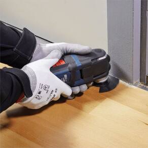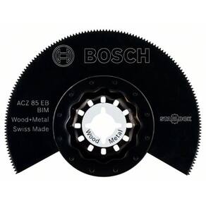 - A lâmina ACZ 85 EB Starlock garante uma duração longa ao cortar madeira e metal não endurecido. A sua base BIM (bimetálica) combina uma lâmina HCS (aço com alto teor de carbono) e dentes HSS (aço de corte rápido) para resistir ao desgaste e ao calor ao cortar metais não endurecidos e materiais abrasivos. A tecnologia de solda circular patenteada da Bosch une tiras HSS a uma base da lâmina HCS para dentes resistentes e independentes, evitando travamentos, marcas de queima e apresentando resultados fiáveis numa utilização intensa. Esta lâmina foi projetada para cortar molduras de porta e moldes mais pequenos, laminado e parquet, madeira e metal não endurecido, plásticos e metais tipo sandwich. As extremidades pontiagudas da lâmina permitem cortar nos cantos de difícil acesso, para um desempenho consistente nas necessidades de corte de madeira. O sistema de montagem produz a maior transferência de energia devido a uma ligação tridimensional apertada entre a máquina e o acessório. Para utilização com qualquer ferramenta multicortadora oscilante. É compatível com todas as ferramentas elétricas Starlock, Starlock Plus, Starlock Max e com as multicortadoras mais comuns.