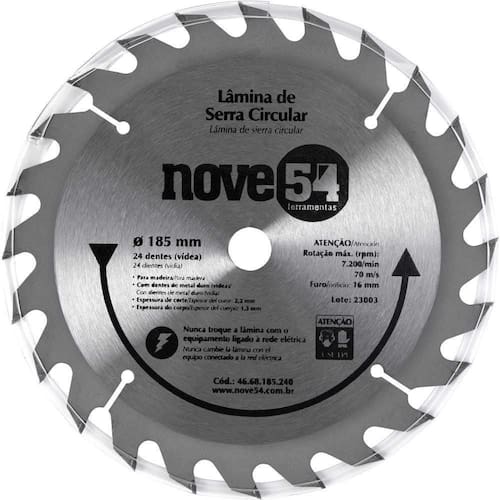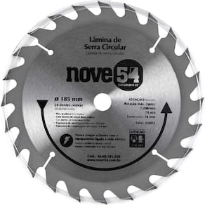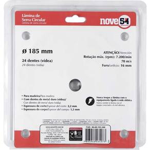 Conteúdo da embalagem: 1 Lâmina de serra circular vídea 185mm 24 dentes Nove54