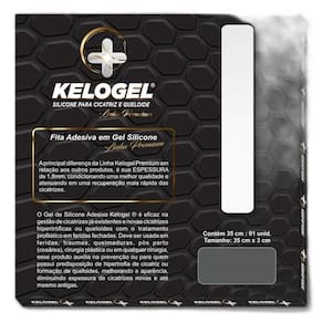 Lamina de silicone 35cmx3cm esp. 1.8mm linha premium kelogel Indicação: o gel de silicone adesivo kelogel é eficaz no gerenciamento de cicatrizes, cicatrizes hipertróficas ou queloides com o tratamento profilático em feridas fechadas. Deve ser Utilizado em feridas, traumas, queimaduras, pós-parto cesárea , cirurgia plástica ou em qualquer cirurgia, esse produto auxilia na prevenção ou para quem possui predisposição de hipertrofia de cicatriz ou formação de queloides, melhorando a aparência, diminuindo espessura de cicatrizes novas e até mesmo antigas. Contraindicação: Evite o uso do produto se for alérgico a borracha de silicone. Não use em feridas que não foram curadas. Benefícios: Cicatrizes mais claras, menos avermelhadas e menos espessas. Modo de usar: antes de manipular o produto fora da sua embalagem plástica, lave e higienize as mãos, e garanta que esteja livra de qualquer produto oleoso. Limpe e sanitize a pele a qual será aplicada, não usar pomada, creme ou algo oleoso no local secar e em seguida retirar a película protetora e aderir ao lado hidratante colante adesivo na região a ser tratada. Permanência de uso: usar de 8 a 12 horas consulte seu médico no período diurno ou noturno, com pausa de 2 a 4 horas entre os períodos de uso, ou sob orientação médica. Se estiver usando alguma pomada, usar no período de descanso, pois ela pode interferir no desempenho do produto, não usar a fita em pele molhada ou oleosa. Após a retirada da película protetora, a vida útil do gel em uso é de 2 a 4 semanas, conforme cuidado do produto, recomenda-se o uso do gel de silicone adesivo kelogel de 90 dias no mínimo, para um melhor resultado, aconselhamos 180 dias. Conservação: Lavar sempre que necessário com água morna e sabonete neutro, enxaguar com água morna e limpa, secagem natural a sombra por 4 horas. Recomenda-se o uso de modelador, cinta ou malha cirúrgica, ou algo que comprima o local, para que ela não escorregue, cobrir com micropore, para melhor fixação. Registro anvisa/ ms nº 81926090001