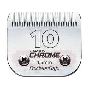 Lâmina de tosa 10 carbon chrome precision Descrição Lâmina 10 As lâminas carbon chrome da precision edge são confeccionadas em aço carbono japonês de altíssima qualidade e dureza.Proporcionam cortes macios e precisos, e encaixe perfeito em todas as máquinas de tosa profissionais (exceto a8s e bravura).Tratamento na lâmina com adição de cromo, através da tecnologia "frozen temper", proporcionando maior proteção contra ferrugem, longa autonomia e mais resistência aos impactos.Altura do corte1,5mm