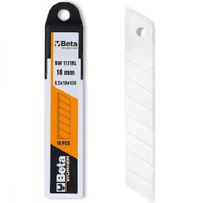 Produto: Lâmina para estilete 18 mm 10 unidades com estojo - BW 1771RL Marca: Beta Descrição: O Lâmina para estilete 18 mm 10 unidades com estojo BW 1771RL da Beta é a escolha ideal para profissionais que não abrem mão de qualidade e precisão em seus trabalhos. Este prático estojo inclui 10 lâminas de substituição perfeitas para os modelos de referência BW 1771 e BW 1771BM da Beta, garantindo compatibilidade e desempenho. As lâminas medem exatamente 0,5 x 18 x 109 mm, dimensionadas com precisão para encaixe e funcionalidade ideais. Feitas com material de alta qualidade, estas lâminas oferecem uma durabilidade impressionante e uma capacidade de corte superior, ideal para cortes precisos e eficientes em várias superfícies. Características: • Durabilidade Aumentada: Fabricadas em aço de alta qualidade, as lâminas possuem uma vida útil prolongada, mesmo sob uso frequente e intenso;• Corte Preciso: Com espessura de 0,5 mm, garantem cortes extremamente precisos, ideais para trabalhos detalhados;• Compatibilidade Perfeita: Projetadas especificamente para os modelos BW 1771 e BW 1771BM, asseguram um encaixe perfeito e um desempenho eficaz;• Estojo Conveniente: O estojo robusto e compacto facilita o transporte e armazenamento das lâminas, mantendo-as seguras e acessíveis.Especificações: Dimensões: 0,5 x 18 x 109 mmQuantidade de peças: 10.Itens Inclusos: 1 Estojo para transporte