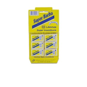 Lâmina Inox Barbear 60 Peças - Super Barba Característica Uso: Cuidados Pessoais Restrições/riscos: Este produto é cortante e deve ser mantido fora do alcance das crianças Durabilidade: Indeterminada Especificações Técnicas Composição da Embalagem: 6 caixas compostas por 10 lâminas de barbear cada da loja: 90 dias Produto Origem: China Código de Barras: 7897609902483 Observações: Foto meramente ilustrativa Dimensões Medidas do Produto: Comprimento: 9 cm Largura: 12 cm Altura: 1,5 cm Peso: 83 g Marca: Não Informado Ean: 7897609902483