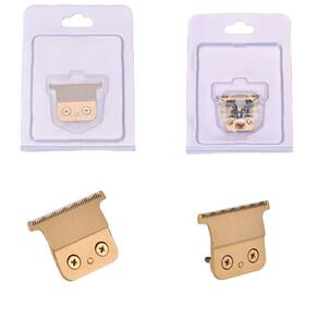 matéria: afiada e forte. Não é fácil de ferrugem. -resistente ao desgaste. Conveniente para o uso. Durável e prático. Profissional de precisão precisas de excelência esta lâmina é projetada especificamente fornecer uma guarnição extremamente próxima. Cria uma linha nítida e limpa que manterá seus clientes voltando. A área de corte prolongada da lâmina produz resultados mais rápidos para a eficiência final. Ideal para cabelos faciais e design, permite que você obtenha criativo ao manter linhas limpas. Ajustável com capacidades de sobreposição zero. Especificações do produto: dourada na cor. Lâmina de dois furos. Inclui parafusos e instruções. O conjunto padrão da lâmina de substituição para profissional detalhe trimmer