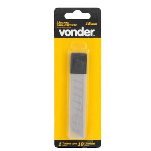 Conteúdo da Embalagem: 10 lâminas Utilizada em estiletes para cortes em geral Lâmina em aço, com furo e rasgo para encaixe. Possui 7 segmentos. DETALHES TÉCNICOS Tipo da lâmina: Reta segmentada Comprimento da lâmina: 108,0 mm Largura da lâmina mm : 18,0 Espessura da lâmina: 0,4 mm CDC : legal: 90 dias