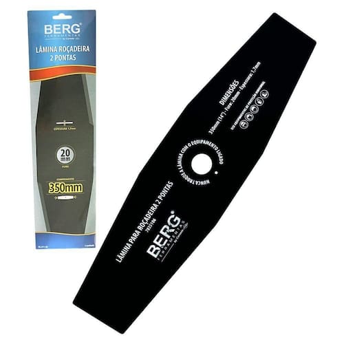 Lâmina Para Roçadeira Com 2 Pontas Projetada para enfrentar vegetação densa e resistentes, esta lâmina será perfeita para todos os tipos de vegetação!Com duas pontas afiadas, a lâmina garante cortes precisos e rápidos, economizando tempo e esforço, seja você um profissional da jardinagem ou um amador.Produzida para enfrentar vegetação densa e resistente, esta lâmina é feita com material de alta qualidade, garantindo durabilidade, resistência e qualidade durante o uso. -Diâmetro do furo: 2cm-Tratamento térmico total;-Pintura plástica preta de alta resistência;-Indicada para uso exclusivo em roçadeiras;-Nunca retirar o protetor da lâmina da roçadeira, que é indispensável contra a dispersão de estilhaços;-Siga as instruções de uso. ESPECIFICAÇÕES:Material: Aço ManganêsDimensões: Comprimento: 35cm x Larg. da extremidade: 6cm x Espessura: 1,7mmPeso: Aprox.: 335g CONTÉM:01 LÂMINA PARA ROÇADEIRA COM 2 PONTAS