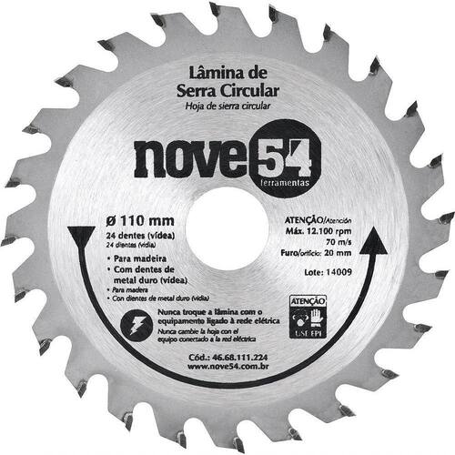 A Lâmina de Serra Circular Nove54 é a escolha ideal para quem busca precisão e durabilidade em cortes de madeira e seus derivados. Com um diâmetro de 110 mm e 24 dentes de metal duro/vídea, esta lâmina é projetada para oferecer uma vida útil prolongada e cortes precisos. Fabricada em aço carbono, ela garante resistência e eficiência, sendo perfeita para ou doméstico. A Nove54 é uma marca reconhecida pela qualidade de seus produtos, e esta lâmina não é exceção. Com uma rotação máxima de rpm, ela é capaz de realizar cortes rápidos e eficientes, sem comprometer a . É importante lembrar de não exceder essa rotação para evitar acidentes e garantir a longevidade da lâmina. Além disso, evite cortar madeiras impregnadas com massa ou cimento para preservar a integridade do produto.