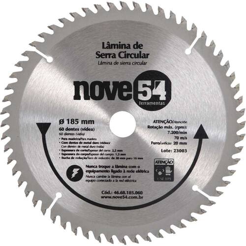 Aplicações e dicas de uso: Indicada para cortar madeiras. Nunca exceder a rotação máxima (rpm) - risco de acidente e/ou queima da lâmina. Não cortar madeiras impregnadas com massa ou cimento. Para cortes em MDF, a vida útil da serra e o nível de qualidade do acabamento serão reduzidos.