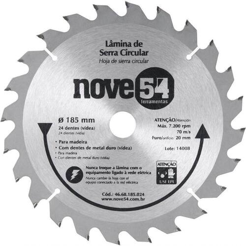 Lamina Serra Circular Vídea 185x20x2,2mm 24 Dentes 7200 Rpm Conteúdo da embalagem 1 Lâmina de serra circular Aplicações e dicas de uso Indicada para cortar madeiras e derivados. Nunca exceder a rotação máxima (rpm) - risco de acidente e/ou queima da lâmina. Não cortar madeiras impregnadas com massa ou cimento. Destaques e diferenciais Corpo em aço carbono com dentes de metal duro/vídea que proporcionam maior vida útil DETALHES TÉCNICOS