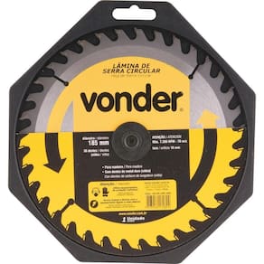 Conteúdo da embalagem1 Lâmina de serra circularAplicações e dicas de usoIndicada para cortar madeiras e derivados. Nunca exceder a rotação máxima (rpm) - risco de acidente e/ou queima da lâmina. Não cortar madeiras impregnadas com massa ou cimento.Destaques e diferenciaisCorpo em aço carbono com dentes de metal duro/vídea que proporcionam maior vida útil DETALHES TÉCNICOS Diâmetro da lâmina de serra circular: 10 - 250 mm Número de dentes da lâmina de serra circular: 36 dentes Espessura de corte da lâmina de serra circular: 3,2 mm Espessura do corpo da lâmina de serra circular: 2,2 mm Diâmetro do furo da lâmina de serra circular: 30 mm Rotação máxima da serra circular: 5.300 rpm Velocidade periférica: 70 m/s
