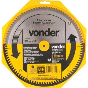 Conteúdo da embalagem1 Lâmina de serra circularAplicações e dicas de usoIndicada para cortar madeiras e derivados. Nunca exceder a rotação máxima rpm - risco de acidente e/ou queima da lâmina. Não cortar madeiras impregnadas com massa ou cimento.Destaques e diferenciaisCorpo em aço carbono com dentes de metal duro/vídea que proporcionam maior vida útil DETALHES TÉCNICOS Diâmetro da lâmina de serra circular: 12 - 300 mm Número de dentes da lâmina de serra circular: 72 dentes Espessura de corte da lâmina de serra circular: 3,8 mm Espessura do corpo da lâmina de serra circular: 2,5 mm Diâmetro do furo da lâmina de serra circular: 30 mm Rotação máxima da serra circular: 4.400 rpm Velocidade periférica: 70 m/s Marca: Não Informado