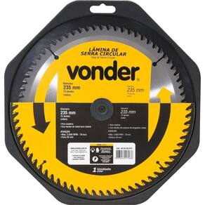 Conteúdo da embalagem1 Lâmina de serra circularAplicações e dicas de usoIndicada para cortar madeiras e derivados. Nunca exceder a rotação máxima rpm - risco de acidente e/ou queima da lâmina. Não cortar madeiras impregnadas com massa ou cimento.Destaques e diferenciaisCorpo em aço carbono com dentes de metal duro/vídea que proporcionam maior vida útil DETALHES TÉCNICOS Diâmetro da lâmina de serra circular: 18 - 450 mm Número de dentes da lâmina de serra circular: 60 dentes Espessura de corte da lâmina de serra circular: 5,0 mm Espessura do corpo da lâmina de serra circular: 3,2 mm Diâmetro do furo da lâmina de serra circular: 30 mm Rotação máxima da serra circular: 2.900 rpm Velocidade periférica: 70 m/s Ean: 7893946054458