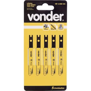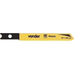 Lâmina Serra Tico-tico Aço Rápido Vd 118a 21dpp Univ Vonder Conteúdo da embalagem 1 Cartela com 5 lâminas Aplicações e dicas de uso Indicada para metais ferrosos e não ferrosos Destaques e diferenciais Cortes rápidos e precisos DETALHES TÉCNICOS