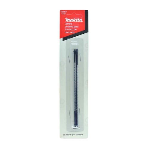 Marca: MAKITAReferência: SC424P Quantidade: 5 unidadesMaterial da Lâmina: HCS Dentes por polegadasLâmina para utilização em serra tico-tico de bancada modelo: SJ401.Atenção: Imagem meramente ilustrativa, podendo conter alguma diferença em sua tonalidade.Lâmina de Serra Tico-tico de Bancada 5un B-07478 MakitaLâmina de Serra Tico-tico de Bancada 5un B-07478 Makita. Ideal para madeiras, MDF, Drywall, compensados e plásticos de 12,5 até 19mm. Uso na serra tico-tico de bancada SJ401 SC411P ou similares.- Marca: Makita- Referência: B-07478- Jogo de lâminas com pino feitas em aço carbono para serra tico-tico de bancada SJ401- Ideal para madeiras, MDF, Drywall, compensados e plásticos de 12,5 até 19mm- Contém: 5 peças- Largura: 2,54 mm- Espessura: 0,46 mm- Dentes por polegada: 15marca: Makitacodigo de barras: 88381334921
