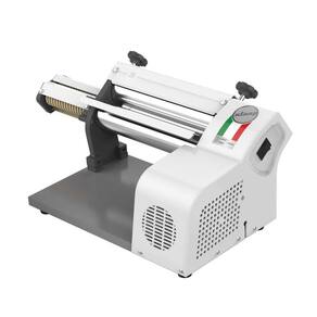 Esse Laminador possui motor de 1/3 CV, seus rolos são de aço cromado com 37cm com diâmetro de 5,7cm, dispondo de rolamentos com mancal em ambas extremidades fazendo com que sua massa fique mais uniforme. Os manípulos para ajuste na massa são em PP, possuindo também raspadores que mantém os rolos limpos não grudando a massa.