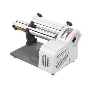Esse Laminador possui motor de 1/3 CV, seus rolos são de aço cromado com 37cm com diâmetro de 5,7cm, dispondo de rolamentos com mancal em ambas extremidades fazendo com que sua massa fique mais uniforme. Os manípulos para ajuste na massa são em PP, possuindo também raspadores que mantém os rolos limpos não grudando a massa.