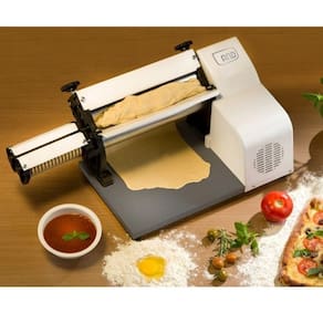 Laminador Elétrico Industrial de Massa 28 cm com Cortador Branco 220V AnodilarProduto extremamente versátil, leve, compacto e fácil de usar. Ideal para produção de massas de lasanhas, pães, pasteis, pizzas, folhados, salgados e uma infinidade de outras possibilidades. Único no mercado com rolamentos nas extremidades dos rolos, garantindo uniformidade na abertura das massas, evitando deformação na espessura e maior durabilidade do produto. Tem rolos em aço cromado com 28 cm de aproveitamento e 5,7 cm de diâmetro, além da abertura ser regulável entre os rolos (0 mm até 7 mm). Agora é click e pronto! Cortador de massas com sistema de encaixe ra?pido e fa?cil, dispensando o uso de chave de fenda e parafusos. O motor de 1/4 CV permite laminar 4 kg e cortar 15 kg de massa por hora garantindo mais produção em menos tempo garantindo mais produção em menos tempo. Excelente relac?a?o de pote?ncia e economia: alta produtividade consumindo apenas 0,3 kW/h. Higiene, limpeza e segurança: Motor protegido com carenagem em polímeros antichamas para maior segurança do produto mesmo aquecido, além de pés emborrachados que absorvem a vibração e não derrapam. Além disso, possui raspadores para a massa não grudar, mantendo os rolos limpos durante e depois da utilização. Produto certificado pelo INMETRO.