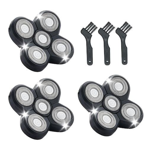 Lâminas de substituição para barbeador de cabeça, 5 cabeças de barbear para homens carecas, cabeça de barbeador elétrico de cabeça e rosto - ??Material?: 360 graus sem becos sem saída. Design de cabeça redonda protege perfeitamente sua pele de arranhões. Você pode desfrutar de um barbear seguro e suave sem arranhar - ??Dica quente?: para manter seu barbeador superdesempenho. Recomendamos que você substitua as cabeças de barbear a cada 3-6 meses - ??Modelo adequado?: 5 cabeças de substituição para barbeador de cabeça recarregável Fre*b*ird Head Shaver Kit de barbeador, Freedom Fle*Seri*s Kit de barbear de lâminas de substituição para barbeadores masculinos carecas - ??Fácil de instalar?: Você pode substituir as cabeças de barbear em alguns minutos. Coloque uma pequena gota de óleo de bebê em cada cabeça e deixe o barbeador funcionar por 10 segundos após a instalação, para garantir que seu barbeador funcione corretamente e sem problemas. - ??Adequado para?Lâminas de substituição de barbeador de 360 graus, adequadas para mulheres/homens, cabeças de substituição para remoção de pelos secos e úmidos.
