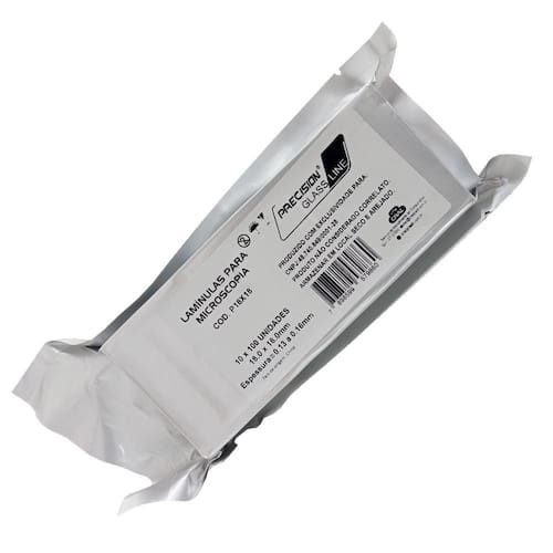 - Finas placas de vidro, fabricadas em polímeros especiais, resistentes a substâncias químicas - Espessura: 0,13 mm a 0,16 mm - Apresentação: pacote com 10 caixas com 100 unidades em cada totalizando 1000 lamínulas