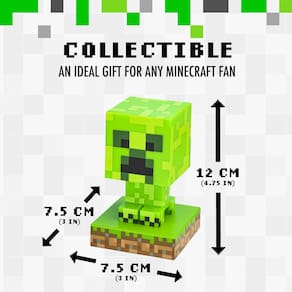 Paladone Minecraft Creeper Light, Lâmpada 3D - Luz noturna oficialmente licenciada - 12 cm de altura, alimentado por bateria, decoração de quarto e sala de jogos para jogadores de Minecraft - MINECRAFT LIGHT: Dê vida a um Creeper, uma multidão bem conhecida do popular jogo Minecraft, com uma luz de personagem 3D. Fica em um bloco de grama pixelado como no jogo. - Ilumine a noite: use esta luz noturna como uma luminária de mesa na mesa de cabeceira ao lado da sua cama. É uma maneira perfeita de iluminar sua caverna masculina, quarto, berçário, sala de jogos infantil ou home theater temático - Ecológico: este item é feito com BDP, um aditivo orgânico que o torna compostável, naturalmente decomposto em aterros sanitários e reciclável, por isso é bom para o meio ambiente e a decoração da sua casa - Presente autêntico: para aqueles fãs que procuram itens inovadores e todas as coisas geek, loucas e exclusivas, a Paladone é sua melhor fonte de brinquedos, canecas, colecionáveis e novidades mais vendidos - Licenciado oficialmente: este item colecionável de qualidade é uma adição única ao conjunto de qualquer fã. Dê esta mercadoria legal de colecionador para mães, pais, fãs, estudantes, crianças, meninos e meninas que amam a diversão da cultura pop
