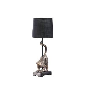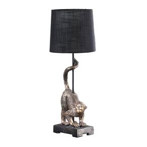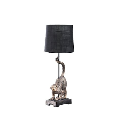 Candeeiro de mesa Benjara Ree de 24 polegadas, escultura em resina de macaco, abajur de tambor, bronze e preto