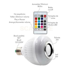 Conecte qualquer dispositivo que possui bluetooth (, computador, ) com a lampada e curta as suas musicas no melhor estilo, com as luzes RGB que mudam de cor.
