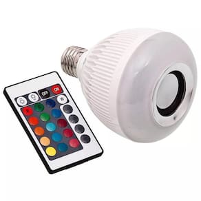 Lâmpada bulbo 12W de Potência que toca música e ainda tem controle remoto com 24 funções e 16 cores.