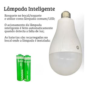 A lâmpada acompanha duas baterias lítio, que é carregada no bocal que está instalada.
