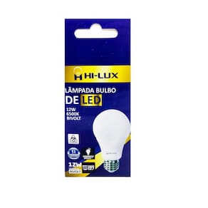 Lampada de led 12w 6500k Cor: branco - frio Lampada de led 12w 6500kn lâmpada led bulbo 12w 6500k A linha de lâmpadas led hilux é indicada para retrofit de lâmpadas incandescentes ou fluorescentes, em diversos tipos de aplicações para ambientes internos. Propriedades lâmpadas certificadas pelo inmetro. formato às lâmpadas incandescentes tradicionais. corpo em policarbonato branco e difusor em policarbonato branco leitoso. possui driver interno isolado. Características de funcionamento temperatura ambiente: -5c a 40c. tensão de entrada: 100v a 240v. Especificações técnicas base : e27 tensão : bivolt automático 100v - 240v ângulo de abertura : 180 graus potência : 12w fluxo luminoso : 1080 lumens temperatura de cor : 6500k emissão de cor : branca equivalência : incandescente 75w / fluorescente 20w dimensões : 108mm x 60mm Marca: Não Informado Ean: 0609963686223