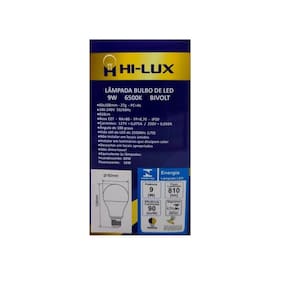 Lampada de led 9w 6500k Cor da luz: branco frio Voltagem: 110/220 bivolt Lampada de led 9w 6500kn lâmpada led bulbo 9w 6500k A linha de lâmpadas led hilux é indicada para retrofit de lâmpadas incandescentes ou fluorescentes, em diversos tipos de aplicações para ambientes internos. Propriedades lâmpadas certificadas pelo inmetro. corpo em policarbonato branco e difusor em policarbonato branco leitoso. possui driver interno isolado. formato às lâmpadas incandescentes tradicionais. Características de funcionamento temperatura ambiente: -5c a 40c. tensão de entrada: 100v a 240v. Especificações técnicas base : e27 tensão : bivolt automático 100v - 240v ângulo de abertura : 180 graus potência : 9w fluxo luminoso : 810 lumens temperatura de cor : 6500k emissão de cor : branca equivalência : incandescente 60w / fluorescente 16w dimensões : 108mm x 60mm Marca: Não Informado Ean: 0609963686209