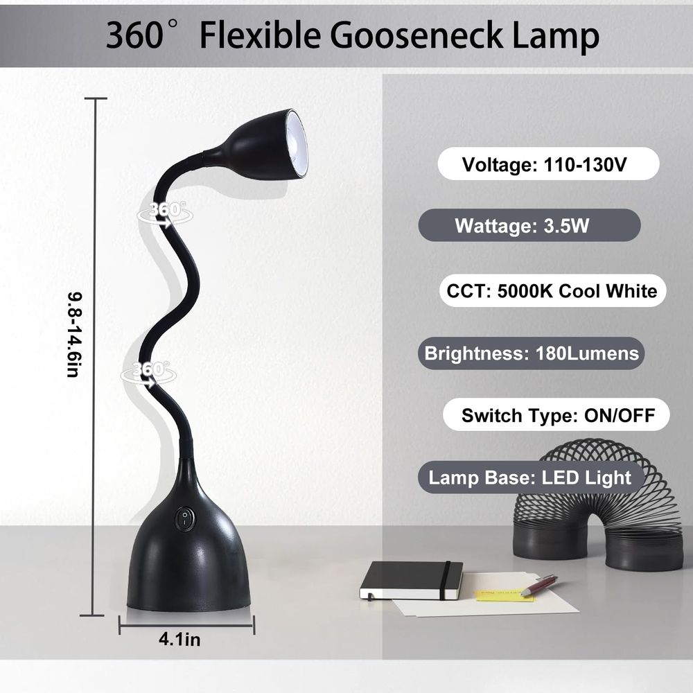 - O pescoço de ganso flexível permite que você dobre e ajuste em qualquer direção, garantindo uma iluminação precisa exatamente onde você precisar. A lâmpada de mesa LED é elegante, moderna e o design preto limpo complementa qualquer decoração de casa