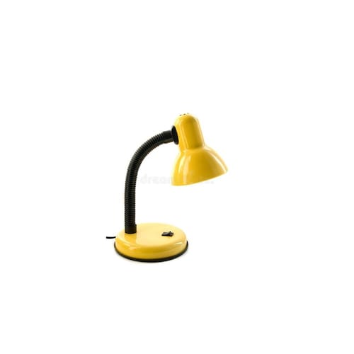 LÂMPADA DE ESCRITORIO CUELLO FLEXÍVEL AMARILLA Lâmpada prática e versátil, de tamaño ideal para esses lugares de la casa onde se precisa de uma iluminação personalizada, de acordo com as necessidades de cada espaçoCuello flexiblePantalla de metalAltura 35cm * Diametro de base 14.5cmSoquete para ampolleta tradicional E27Foco 1*60W max, compatible com lâmpadas LED, INCLUI LÂMPADA LED DE PRESENTE Com interruptor na baseCor: Amarelo
