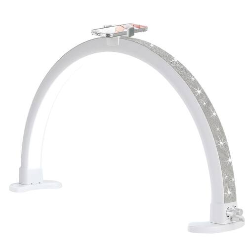 Ciyebst Luz de meia lua com suporte de telefone, lâmpada de mesa de unhas de 29 em 48 W, luz de cílios para tecnologia de cílios, maquiagem, tatuagem, spa, salão, lâmpada de tecnologia de unhas com regulação contínua e temperatura de cor