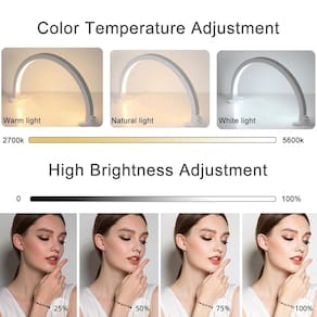 - Brilho ajustável e temperatura de cor: esta lâmpada LED para cílios personaliza sua experiência escolhendo luminosidade de 0%-100% de brilho e configurações de temperatura de cor contínuas variando de 3200-5600K. Isso permite que você crie um ambiente de iluminação personalizado.