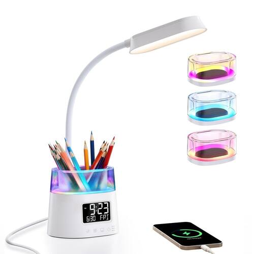 - Presente elegante: esta luminária de mesa branca é perfeita para escritório, quartos, áreas de estudo ou dormitórios universitários. Com um suporte de caneta espaçoso e relógio integrado, oferece armazenamento prático e ajuda a organizar seu espaço de trabalho. Ideal para crianças e adolescentes, é um presente fantástico para aniversários, feriados ou qualquer ocasião especial!
