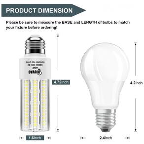 A lâmpada de milho LED de alta luminosidade de 40W equivale a uma lâmpada incandescente de 300W, proporcionando economia de energia. Com incríveis 5000 lumens de saída de luz e iluminação omnidirecional de 360 graus, abrange uma área maior. Possui longa vida útil devido ao corpo de alumínio com excelente condutividade térmica e tecnologia LED de corrente constante inteligente. Com 5000 lumens de brilho intenso, ilumina grandes áreas com 100lm/watt, destacando-se pela intensidade. A base da lâmpada de milho é feita de material PC, resistente ao calor e com alta resistência a chamas. Design único em formato de milho para iluminação ampla, base média E26E27 para fácil instalação. Ideal para uso em garagens, armazéns, jardins, pátios, celeiros, lojas, estações, escolas, hospitais, restaurantes, hotéis e mais.