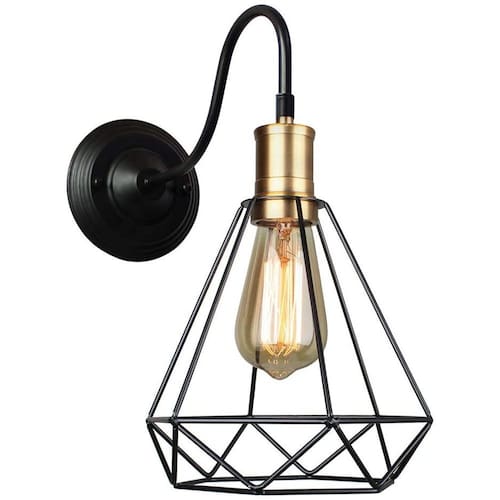 Design retrô: abajur clássico de gaiola de diamante, retrô e bonito. Ambiente industrial forte. Ideal para instalação em corredores, lofts, cozinhas, bares, entradas, etc. Suporte de lâmpada E27 seguro e universal. Você pode substituir uma variedade de lâmpadas, fáceis de instalar e substituir. Recomendado o uso de lâmpadas Edison vintage, lâmpadas incandescentes. O produto contém todos os acessórios de instalação e a instalação é simples e conveniente. Nota: O produto não contém uma lâmpada. A superfície é pintada com preto de alta temperatura para evitar a corrosão, não é fácil enferrujar e tem uma longa vida útil. Tamanho: diâmetro do teto: 14cm, lâmpada (diâmetro * altura): 20 * 25cm. Material: metal. Cor: corpo da lâmpada preta + suporte da lâmpada de bronze.