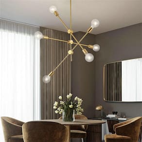 Ouro metal lustre estilo pingente luzCor l de cobre chapeado corpo da lâmpada de ferro anti-corrosão e anti-ferrugemE27 suporte de lâmpada padrão internacionalNome: lustre de metal banhado a cobre nórdicoMaterial: FerroCor: preto, ouroTamanho: como mostradoProcesso: tinta spray de alta temperaturaNúmero de fontes de luz: 4/6Tensão: 95-265VIrradiação: 15?-30?Tipo de fonte de luz: luz ledSoquete: soquete E27 (lâmpada não incluída)Tipo de lâmpada: LED / CFL / lâmpada incandescente (lâmpada Edison recomendada ) Potência máxima recomendada para cada lâmpada: 40WStyle: luxo leve, moderno e simples, Nordic.Applicable places: quarto, sala de jantar, sala de estar, quarto de hotel, etc. Conteúdo do pacote: 1 lustre (incluindo 1 pacote de instalação de acessórios, não incluindo lâmpadas) Modelo: COA21-4 luzes pretas COA21-4 luzes goldCOA21-6 luzes blackCOA21-6 luzes de ouro