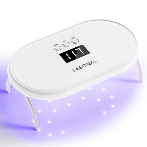 - ?Cura rápida e eficiente?A lâmpada UV LASONAS para esmalte de gel usa tecnologia inovadora de baixo calor com um comprimento de onda de 365 a 405 nm, que não causará sensação de queimação para prejudicar sua pele e corpo. 18 contas de LED de alta eficiência curam o esmalte de gel de forma eficiente e uniforme.